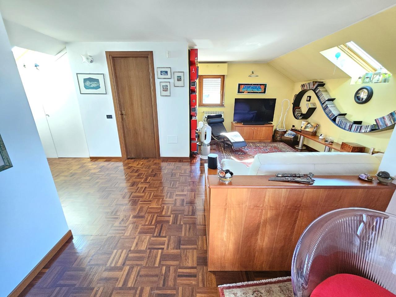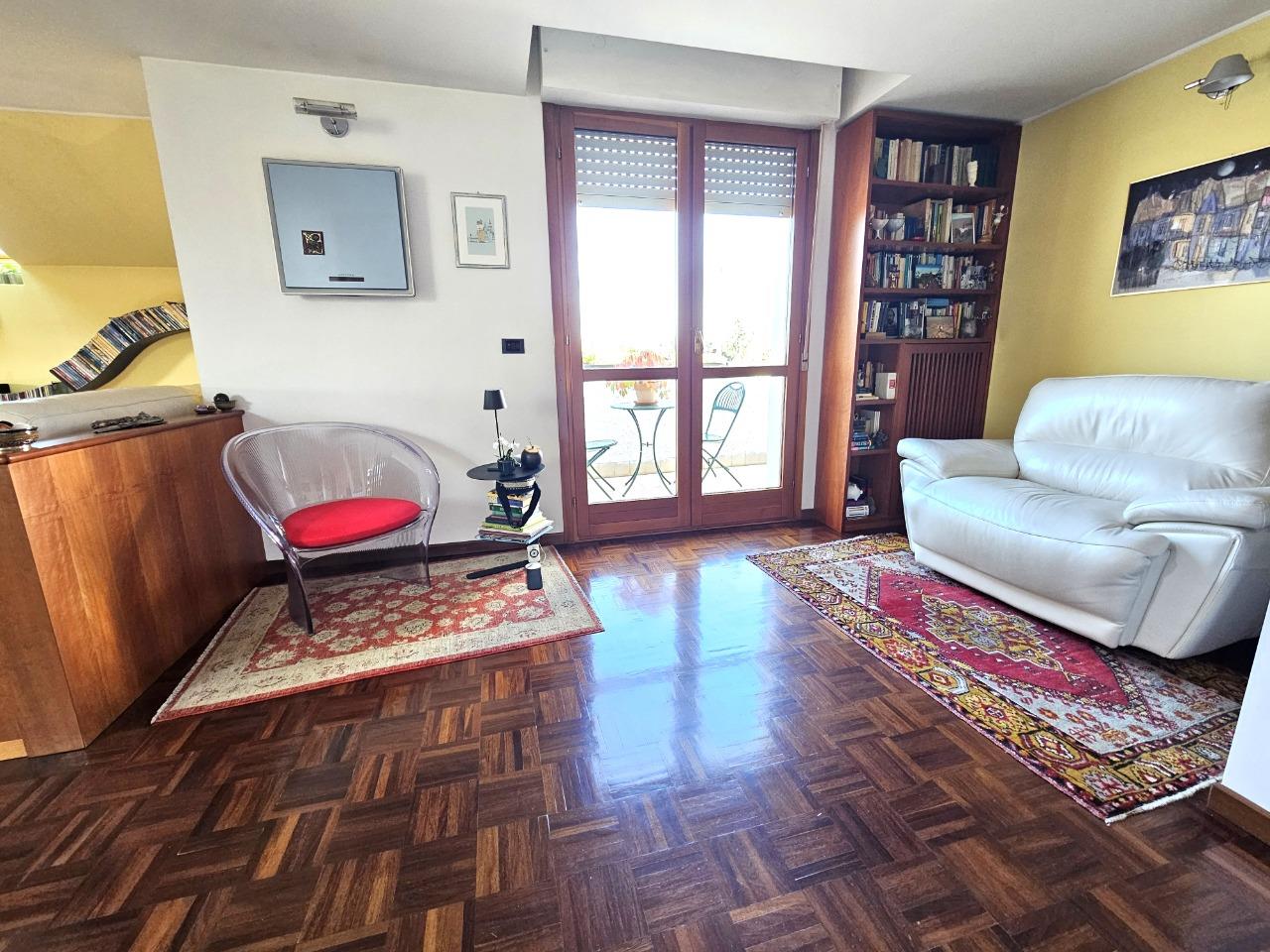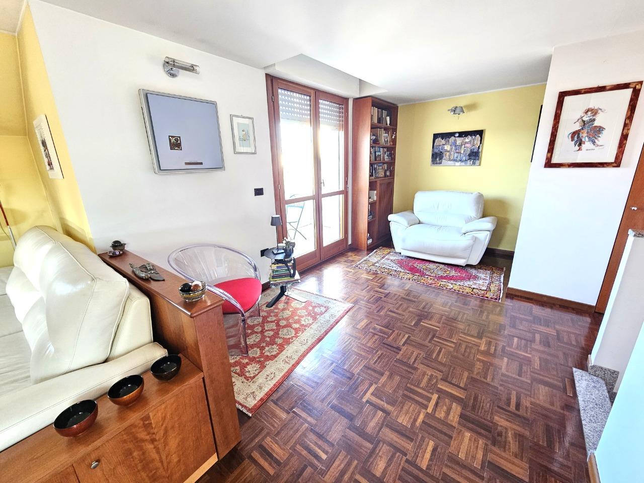 Ottimo appartamento in contesto di sole 4 unità abitative, disposto su due livelli. Al piano inferiore troviamo l'ingresso su soggiorno, cucina abitabile, camera e bagno; tramite una comoda scala in muratura accediamo ad una comoda mansarda open space con bagno (con possibilità di ricavare 2 camere da letto). Completano la proprietà box doppio, 1 balcone e due comodi terrazzi.