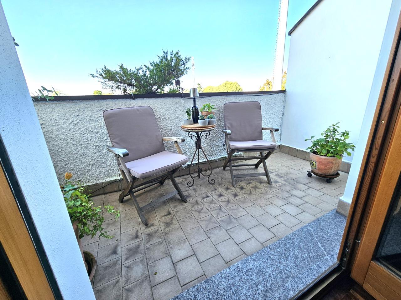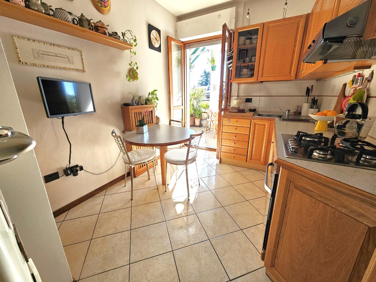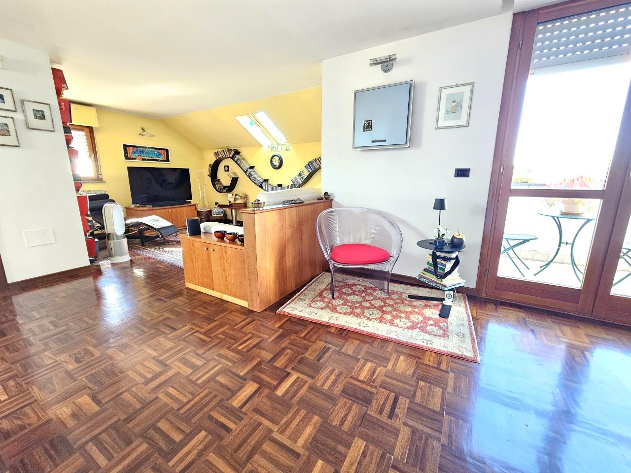 Ottimo appartamento in contesto di sole 4 unità abitative, disposto su due livelli. Al piano inferiore troviamo l'ingresso su soggiorno, cucina abitabile, camera e bagno; tramite una comoda scala in muratura accediamo ad una comoda mansarda open space con bagno (con possibilità di ricavare 2 camere da letto). Completano la proprietà box doppio, 1 balcone e due comodi terrazzi.