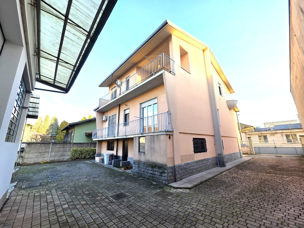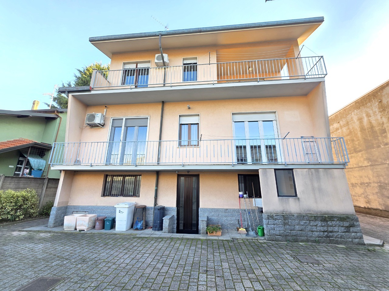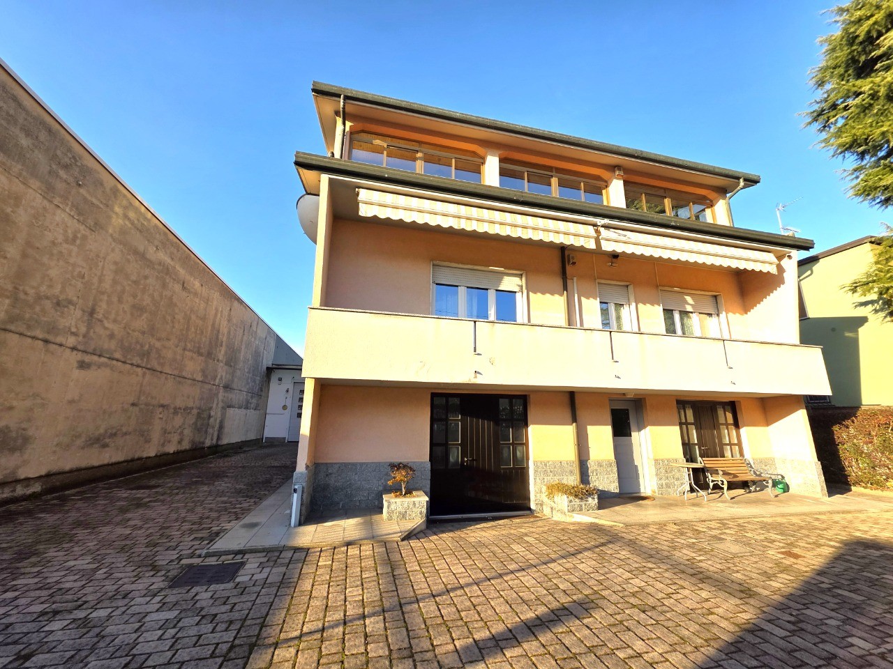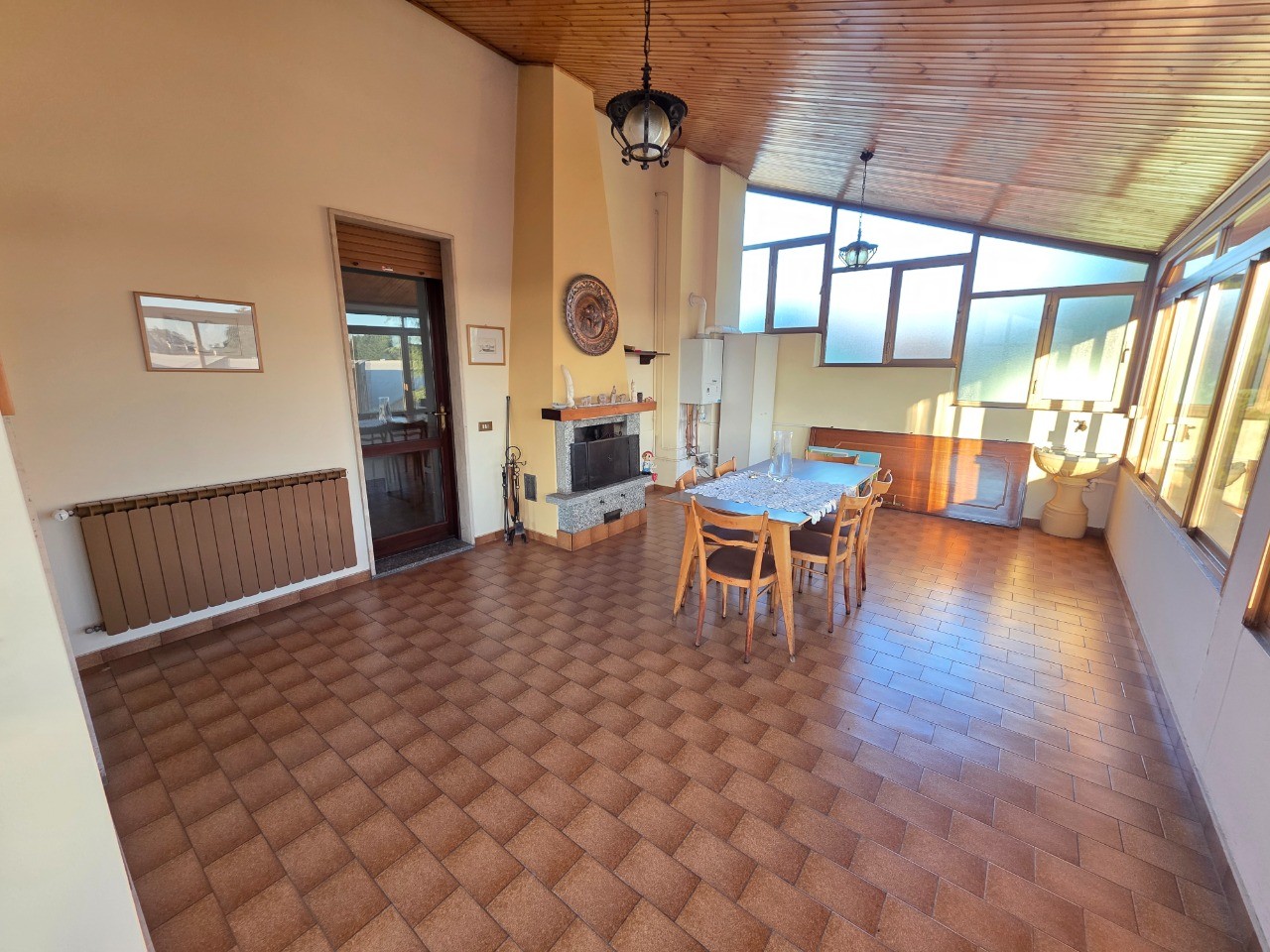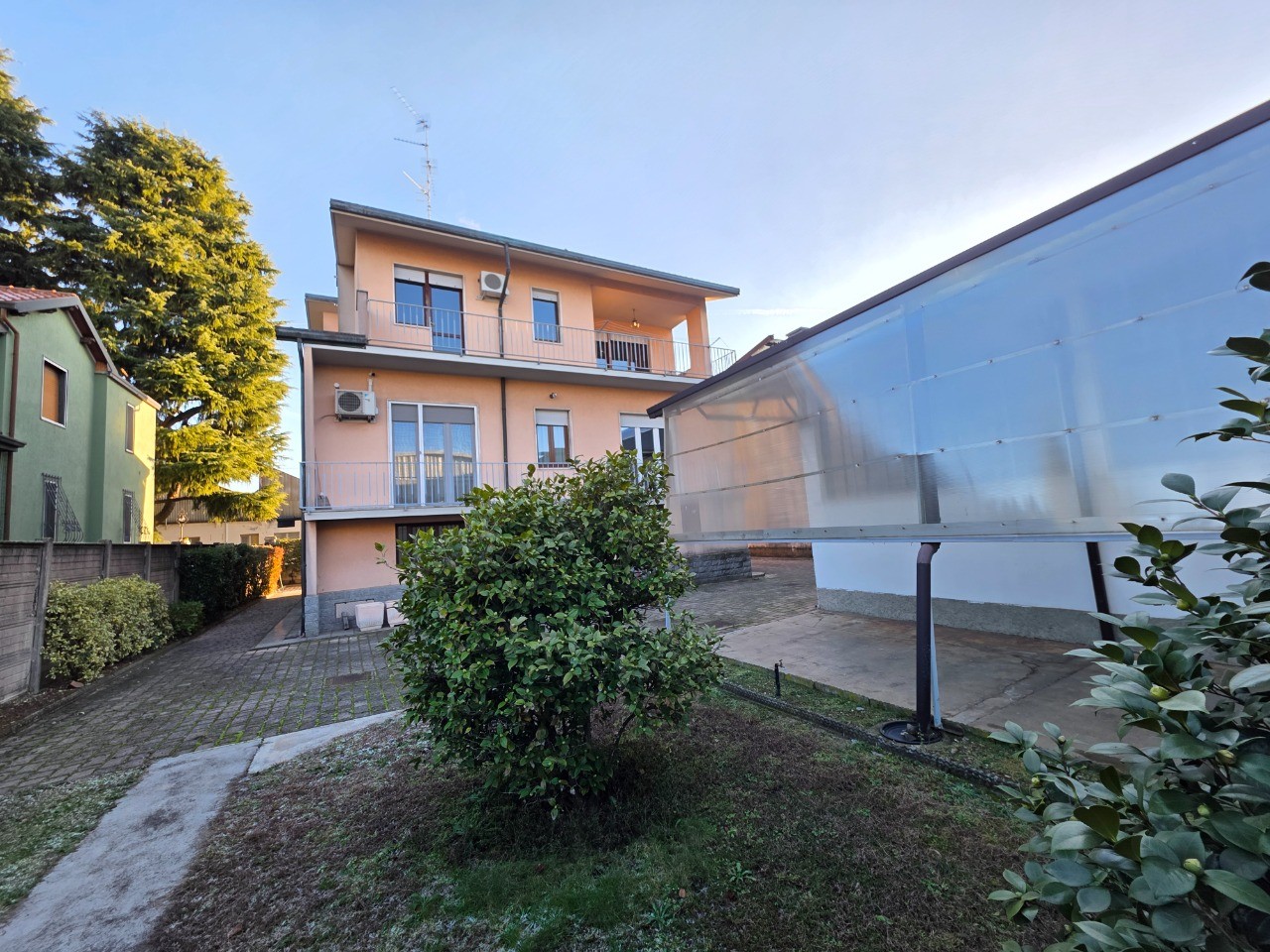 Villa singola con 2 appartamenti oltre taverna, laboratorio ad uso artigianale di 174 mq, box doppio, giardino e area cortilizia. L'immobile è composto da 130 mq al piano terra con locale taverna, lavanderia e locali sgombero. Primo piano di recente ristrutturazione, appartamento di 130 mq composto da ingresso, bellissima cucina con sala da pranzo, soggiorno con camino, disimpegno, 2 camere e bagno. Secondo piano, ampio appartamento bilocale con cucina separata, camera, bagno, 2 terrazzi di cui uno coperto e verandato con camino.