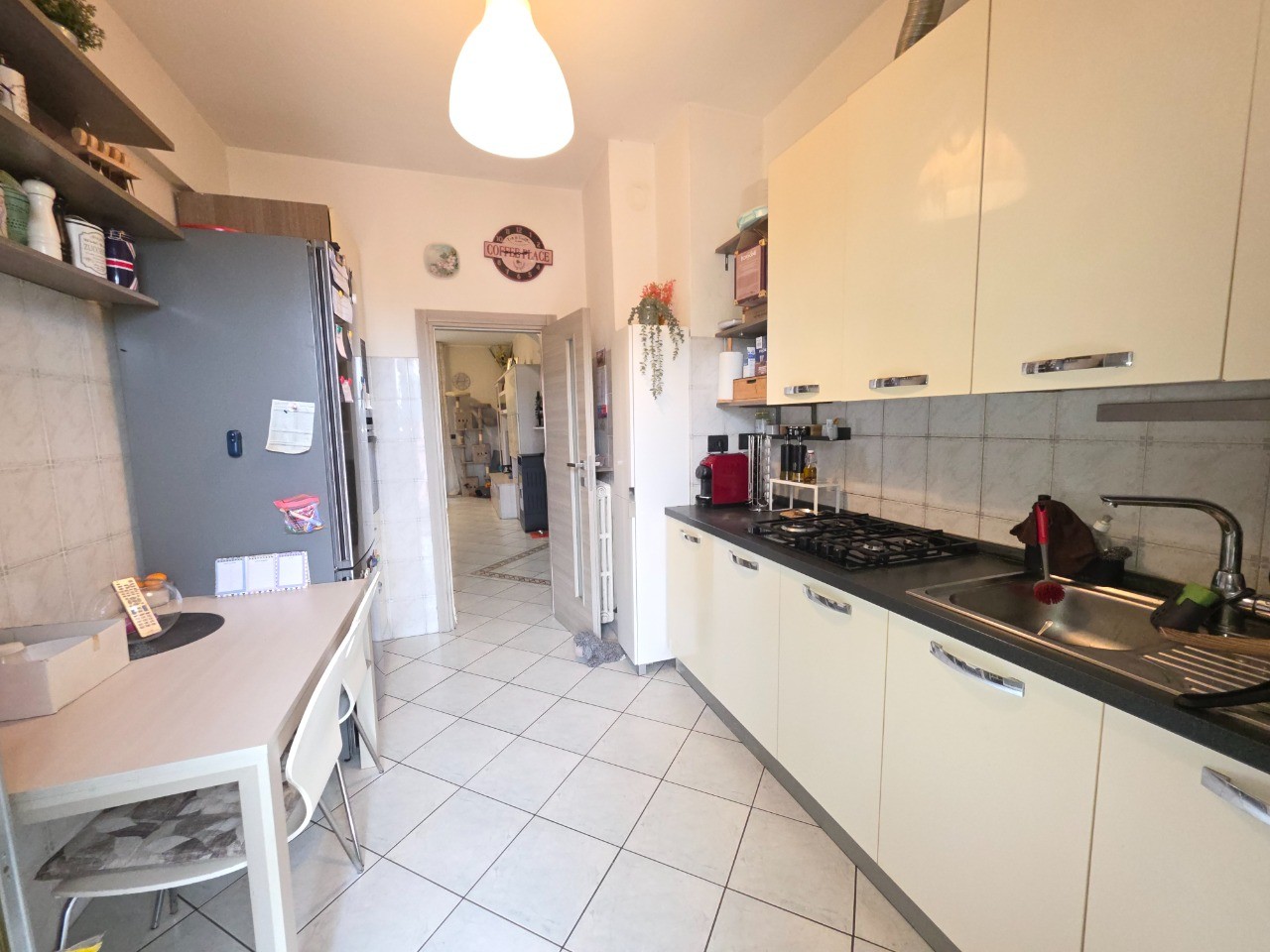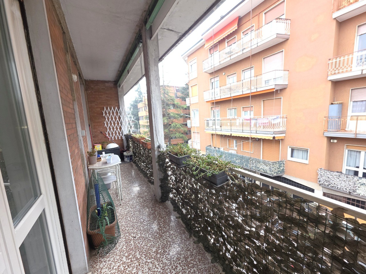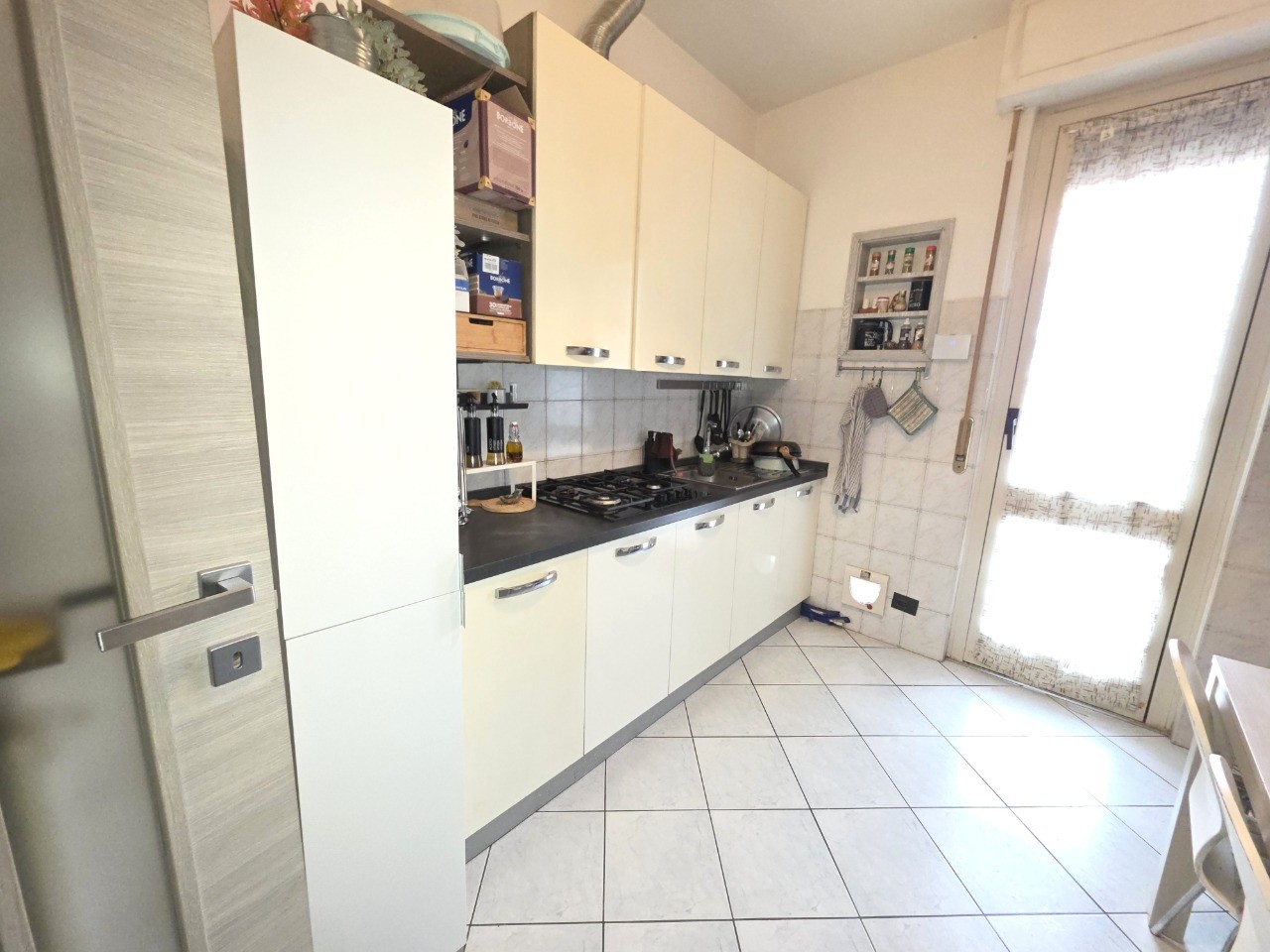 Appartamento sito all'ultimo piano in un contesto di 12 unità abitative. L'immobile è suddiviso da ingresso, soggiorno, ripostiglio, cucina separata, 2 camere e bagno. Posto auto condominiale, 2 balconi e cantina.